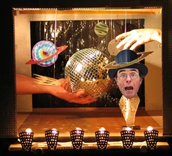 With the opening of the Institute and Museum of Puppetry (the name would change later) Mr. Ballard had another job – that of exhibit designer. Each year he would design and direct the building of the exhibits. Sitting at the table with his friends – the volunteer board of directors – he would carefully describe his vision of how the exhibit would look, and how the spectators would be taken through the space. He chose the themes, puppets, and helped to construct the exhibit. David Bruce, father of UConn student Karen Bruce, designed the lighting for many exhibits according to Ballard’s specs. Ventriloquist and balloon-animal maker Deb Jones played the costumed Pierrot-like “Imp” at many exhibit openings.